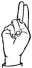 На ћирилици написано МИРКО УЛЕМЕК састоји се из 11 слова [?]. Исписано ћириличном једноручном азбуком за глувонеме: